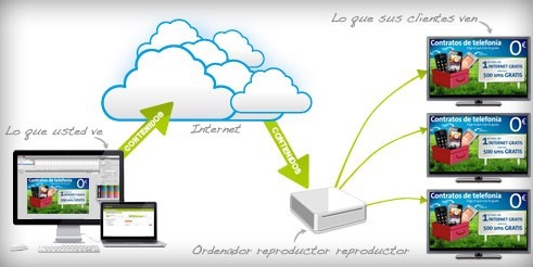 Así mismo, si usted no quiere llevar la gestión de la Cartelía Digital de forma local, porque le parece complicado, nosotros se lo hacemos de forma global por una cuota muy asequible, incluyendo publicidad de terceros con retribución economica (si lo desea), para hacerle más comoda la amortización de su Cartelía Digital.